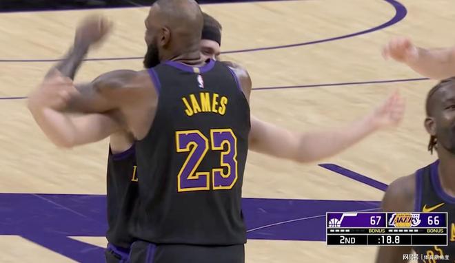 湖人队在此后顺利实现反超,要知道,他们在此前最多时曾落后11分。海斯今日的发型颇具特色,让人一度误以为是浓眉。东契奇投进三分球后,詹姆斯还特意拍打了他以示鼓励,随后东契奇又完成一次“2+1”。海斯也强硬地完成一次“2+1”,点燃了全场气氛。詹姆斯助攻文森特投进压哨三分球,老詹甚至提前开始了庆祝。第三节比赛结束,湖人队以104比93的比分领先进入第四节。